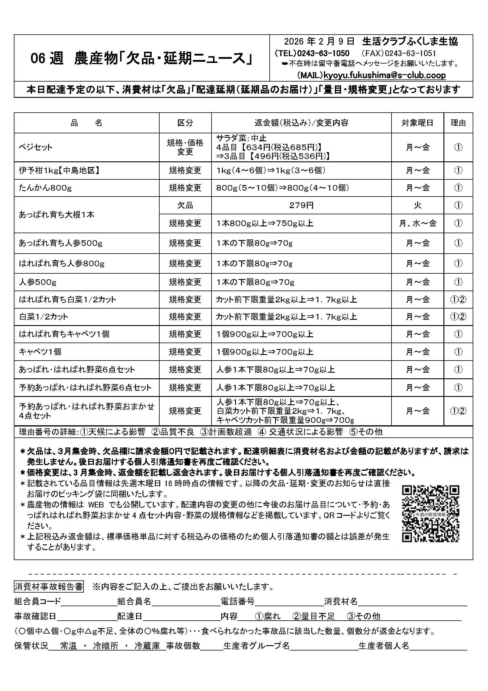 【組合員の皆様へ】06週(2/9~2/13)の配達ニュース