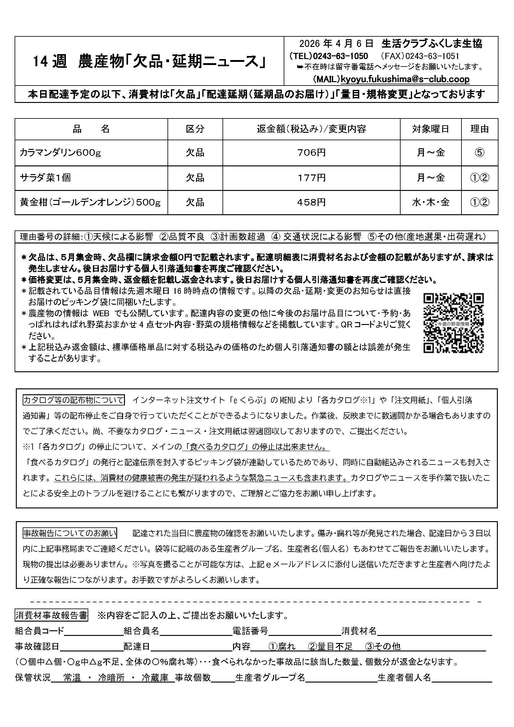 【組合員の皆様へ】14週(4/6~4/10)の配達ニュース