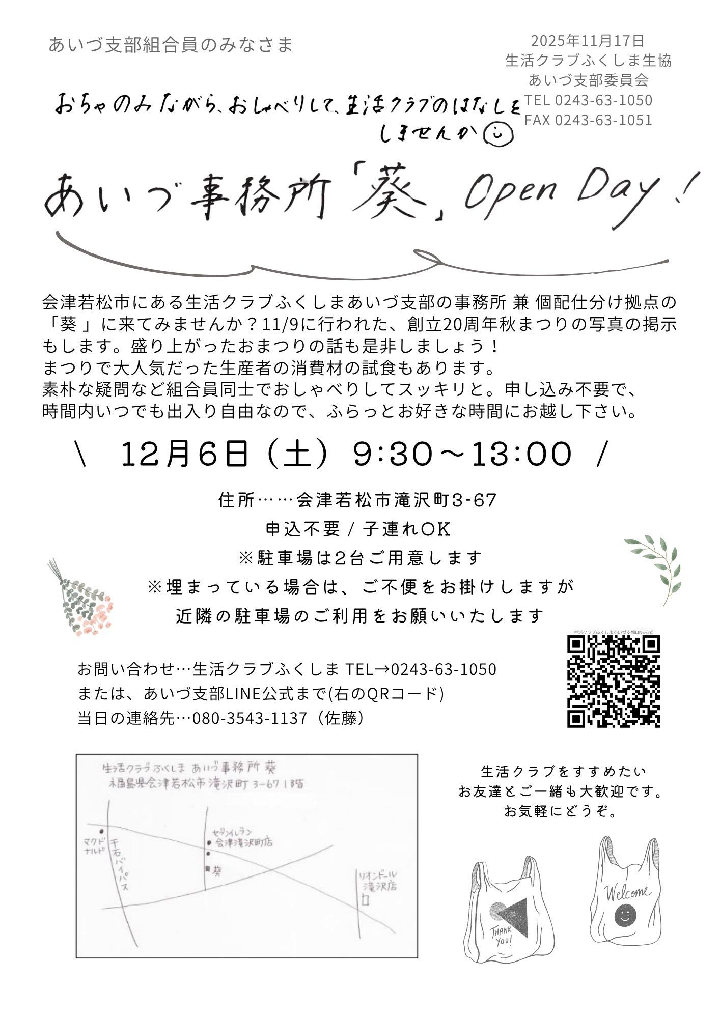 【12/6(土)開催】あいづ事務所「葵」Open Dayのお知らせ